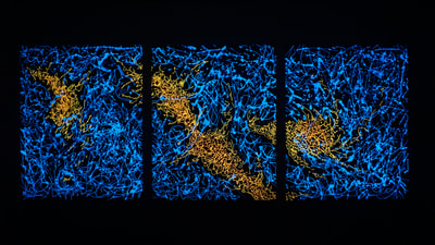 Acrylic on heavy duty panoramic canvas with highest quality blue glow pigment